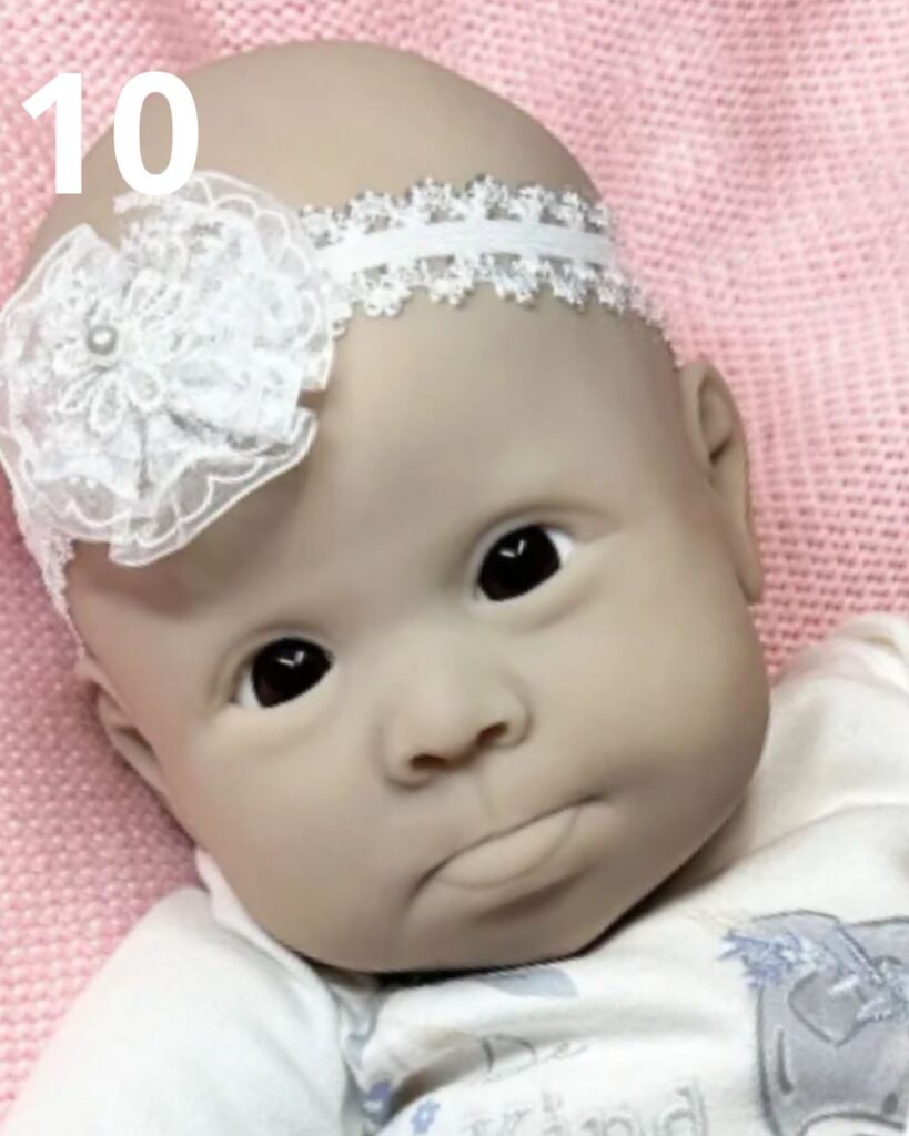 Las fotos muestran el kit en blanco, sobre el cual yo estaré pintando las características que tú elijas. Estas fotos las saqué directamente de las páginas oficiales que venden el kit. Yo no tengo el kit en mis manos, lo compraré una vez realices el encargo. Si te gusta alguno y quieres ver más fotos, puedes buscar el nombre del bebé en internet o puedes escríbeme al WhatsApp y yo felizmente te las envío!