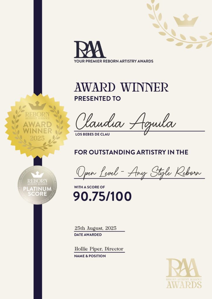 Bebé reborn recién nacido y con una pequeña sorpresa dentro de su nariz! Varios de mis bebés llevan esa sorpresa … me encanta hacerle ese pequeño detalle, pasa desapercibido la mayoría de las veces. Si tienes un bebé hecho por mí, recuerda mirar dentro de su nariz jajaja. Con él participé en el tercer evento organizado por RAA (Reborn Artistry Alliance) y gané el 1° lugar con un puntaje de 90.75/100 en la categoría de «Open Level-Any Style Reborn». Este bebé ya fue adoptado y entregado a su mamá en Australia!