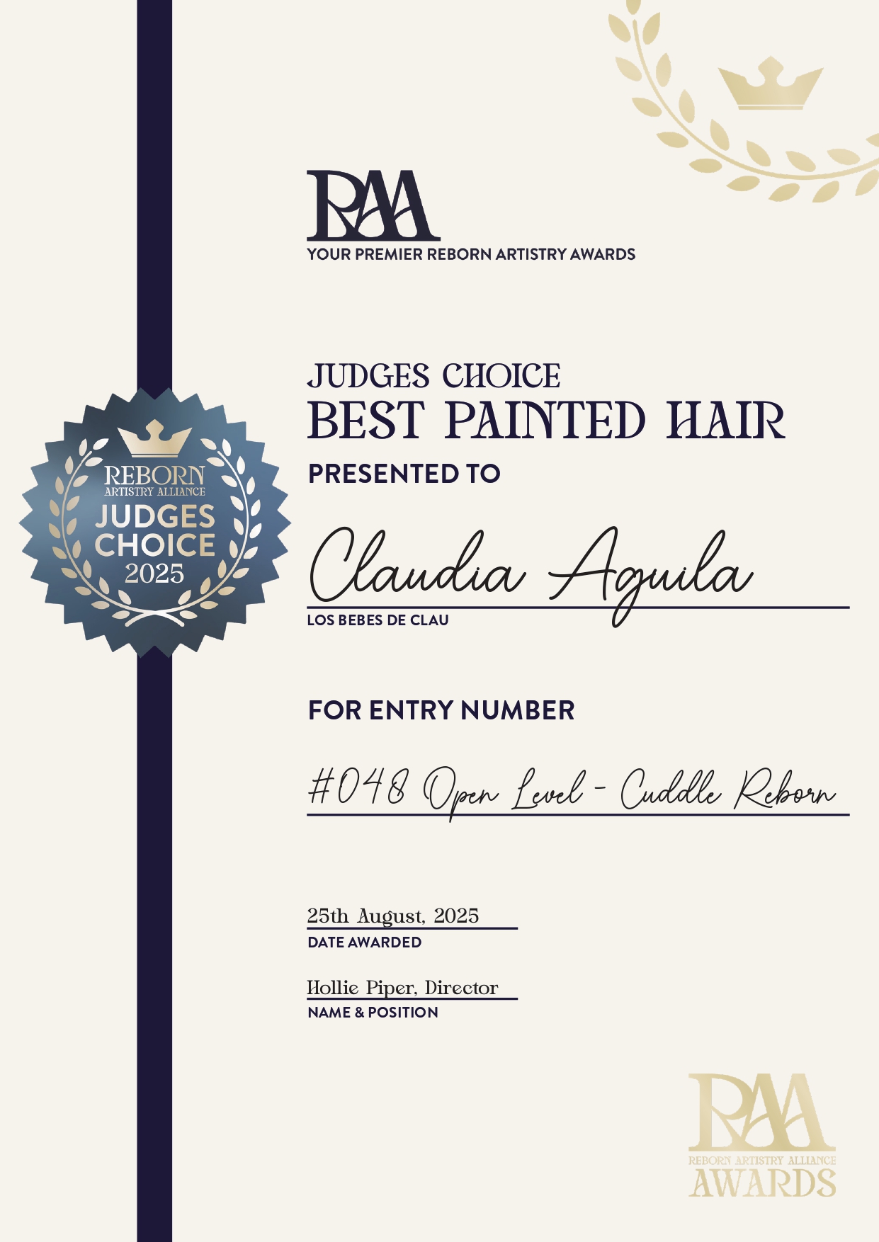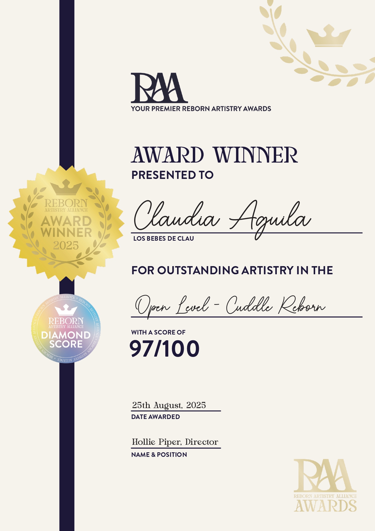 Bebé reborn cuddle baby! Él fue mi cuarta versión del kit Laura, esta vez con pelo pintado. Con él participé en el tercer evento organizado por RAA (Reborn Artistry Alliance) y gané el 1° lugar con un puntaje de 97/100 en la categoría de «Open Level-Cuddle Reborn» además de ser elegido por los jueces como «Mejor pelo pintado». Este bebé ya fue adoptado y entregado a su mamá