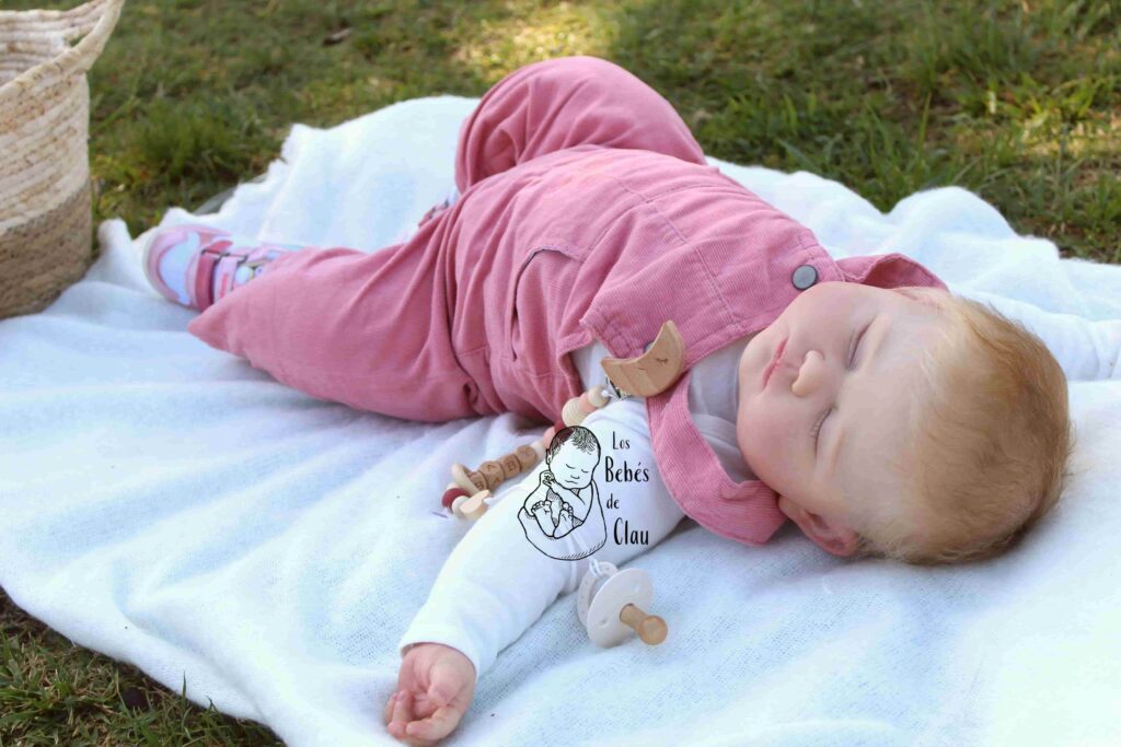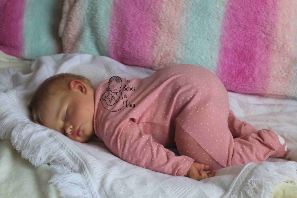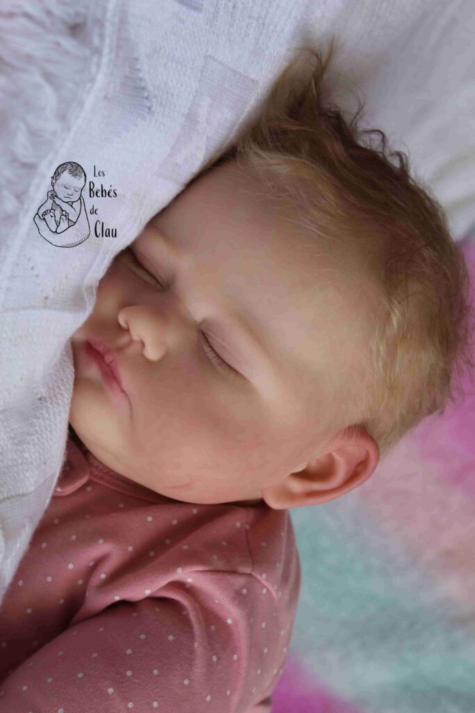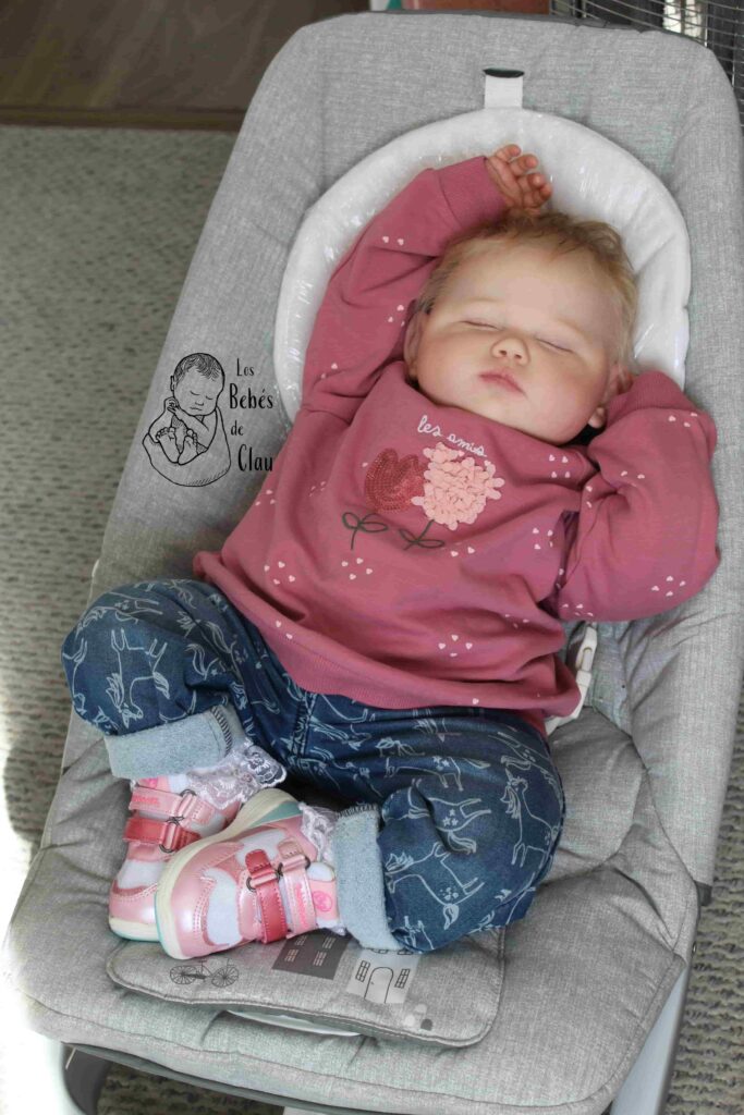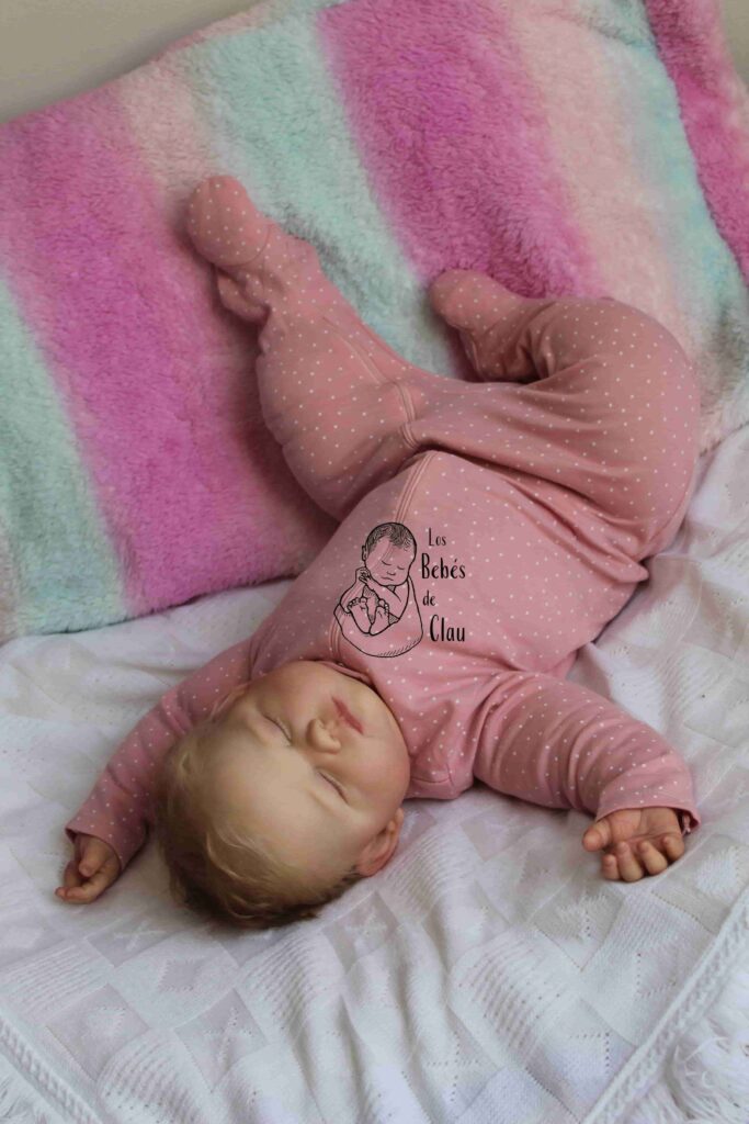 Ella fue parte de mi colección personal, la llamé Florencia («Flor») y estuvo conmigo hasta el 2023. Es la primera bebé de 12 meses con cuerpo modificado que hice, por eso puede adoptar las diversas posiciones que ves en las fotos. Una de mis seguidoras se enamoró de ella y me pidió adoptarla, finalmente se la vendí y no podría haber encontrado un hogar más amoroso! Dejo las fotos como parte de mi portafolio artístico, pero no está disponible.