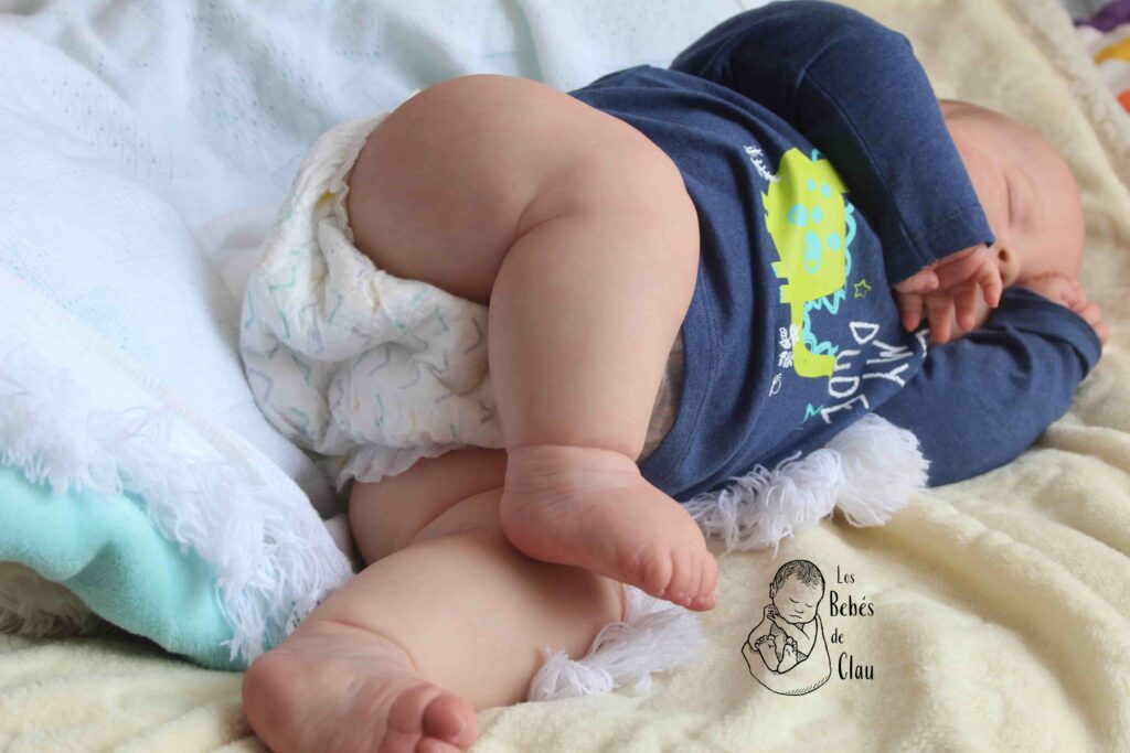 Este Bebé Reborn también fue un encargo personalizado. Para él, modifique su cuerpo de tela original y le agregué un panza/abdomen más voluminoso, ya que el cuerpo original es muy delgado y no combina con la hermosa contextura de sus brazos y piernas. Este bebé ya fue adoptado y entregado a su mamá. Dejo las fotos como parte de mi portafolio artístico