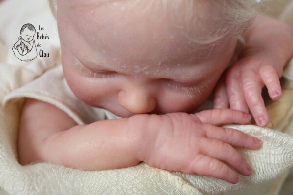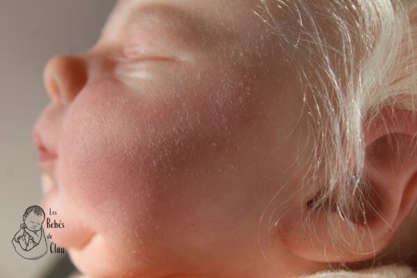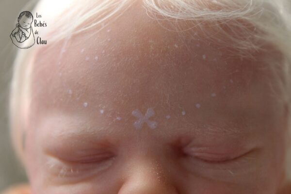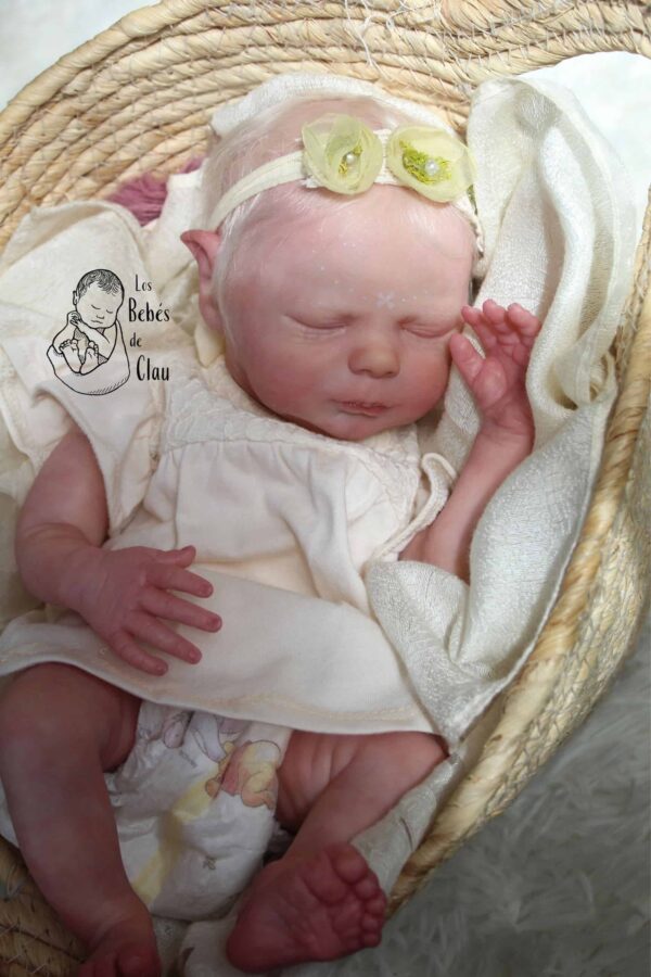 Detalles: dibujo de fantasía en la frente, fue creado con pintura que brilla en la oscuridad, mira la última foto (debes exponerla a la luz previamente, mientras más intensa la luz, más brillará en la oscuridad); tiene lanugo/pequeños pelos blancos en su cara, hombros y muslos, estos fueron añadidos posterior a la pintura (no están pintados); también tiene otros detalles clásicos como milia (puntos blancos en la nariz), efecto de descamación de piel en muñecas y tobillos, capilares en orejas y párpados, venas. Si quieres ver los detalles con mejor calidad, escríbeme por WhatsApp y te envío más fotos.