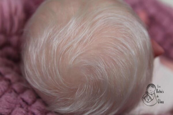Pelo: Injertado con premium natural mohair, color blanco (Shell)