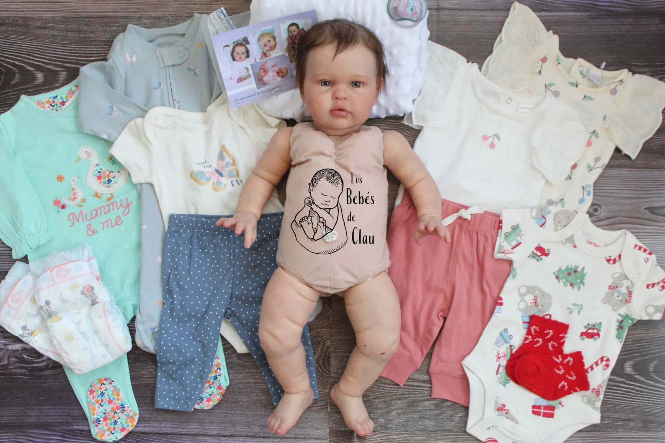 Incluye: conjuntos de ropa, una manta, un chupete modificado con imán, 2 pañales