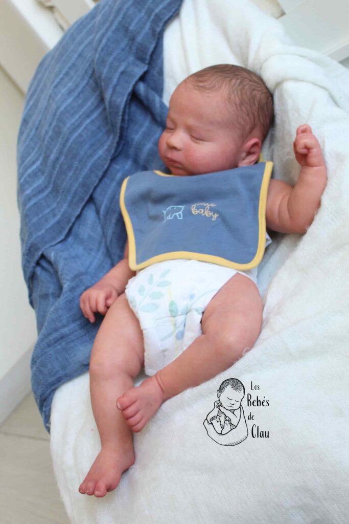 Bebé reborn de aproximadamente 1 o 3 meses. Originalmente lo había creado como un cuddle baby, pero su mamá (antes de comprarlo) me pidió agregar extremidades, yo tenía extremidades sobrantes de otro kit y creo que la combinación de esos brazos y piernas con esa carita, fue todo un éxito! Este bebé ya fue adoptado y entregado a su mamá