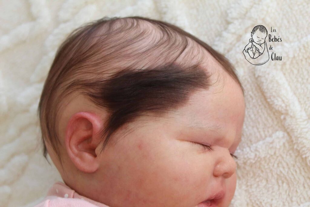 Bebé reborn recién nacida con una marca de nacimiento muy especial. Harlow representa a los bebés que nacen con características distintas, ella tiene un lunar peludo gigante! Científicamente se llaman «nevo congénito gigante». Esta es su historia: ella iba a ser un bebé de pelo pintado sin ninguna marca de nacimiento en especial, sin embargo, tuve un accidente al probar una nueva pintura y le dejé unas líneas naranjas fosforescentes horribles en su sien (ni siquiera yo sé cómo pasó eso jajaja), entonces, tenía dos opciones… descartar la cabeza o cubrir la marca con algo. Y entonces recordé los lunares gigantes, hace mucho tiempo quería intentar hacer un bebé con dichas marcas, y que mejor momento que este. En la vida misma, todos nacemos diferentes, nadie puede elegir con qué rasgos o características nacer, y con los bebés reborn me gusta pensar igual; yo puedo tener una idea base de lo que quiero crear, pero durante el proceso de pintura pueden pasar muchos imprevistos, ante los cuales me gusta dejar fluir a cada bebé. Harlow debía «nacer» con una marca de nacimiento allí, y así tal cual, ella es perfecta y la amo. Esta bebé ya fue adoptada y entregada a su mamá